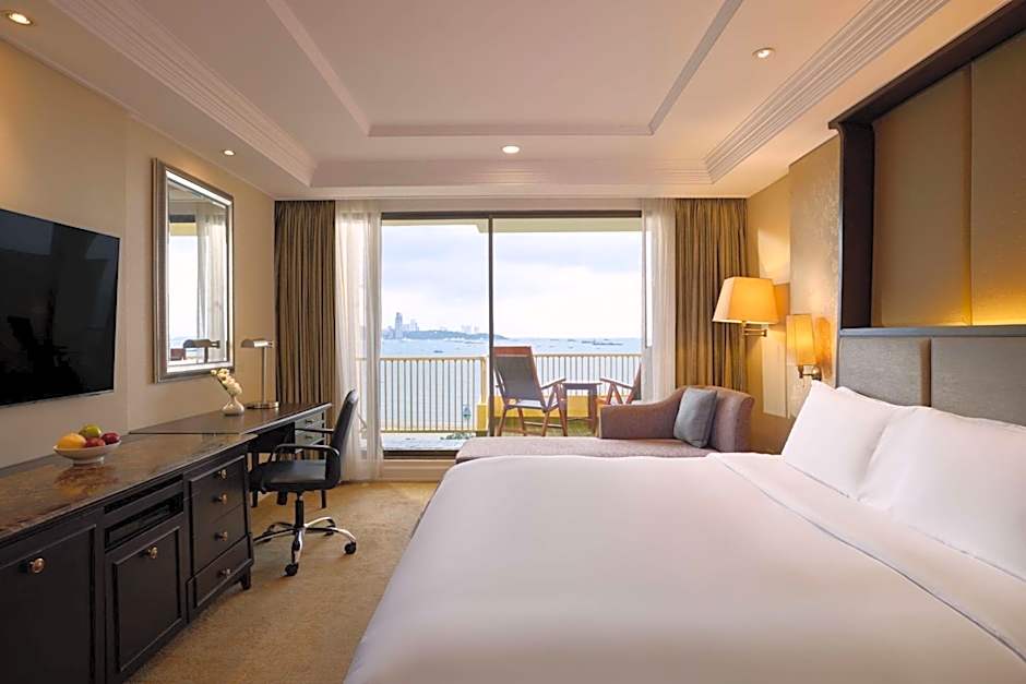 Room offers a pillow menu, large desk and views of the Gulf of Siam.